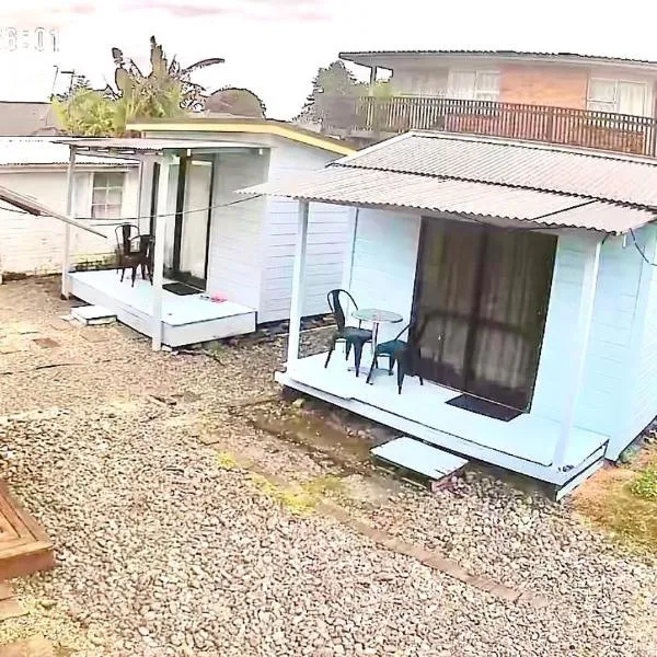 A Cozy Cabin for two in Hamilton East near to CBD and Waikato Hospital localiza-se em Hamilton e fornece acesso Wi-Fi gratuito, um jardim, um salão partilhado e um terraço.