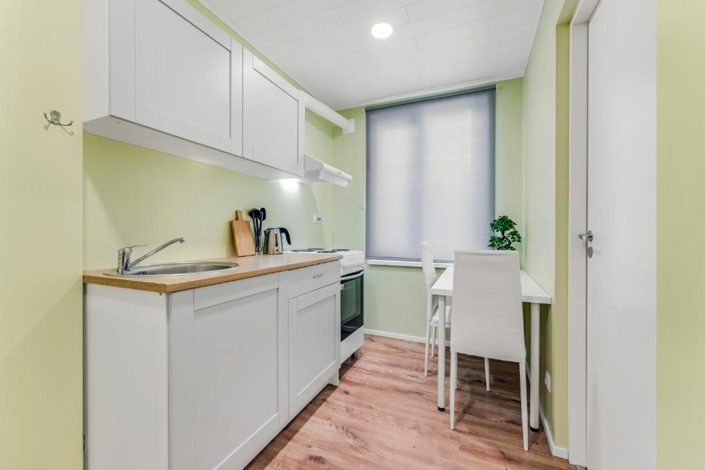“Apartment with minimalistic design in a very old building. As a transit option for one night it is ok. Warm, clean. Tea and coffee available. Contactless checking and checkout.” - Nora