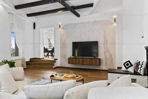 Green Luxury Villa se află în Cornu de Jos și pune la dispoziție cazare cu WiFi gratuit și vedere la grădină, precum și o grădină, o terasă și un bar. Această proprietate oferă acces la un balcon și parcare privată gratuită. Acest chalet cu aer condiționat include 5 dormitoare, un living, o bucătărie complet utilată și 5 băi. Oaspeții au la dispoziție un televizor cu ecran plat. Oaspeții cazați la acest chalet au la dispoziție o saună. Green Luxury Villa se află la 27 km de Stirbey Castle și la 29 km de Casa memorială George Enescu. Aeroportul Internaţional Henri Coandă București se află la 82 km.