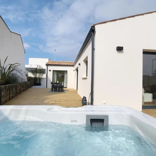 Set in Royan, Havre de paix avec Spa à deux pas de la plage offers a balcony with sea and pool views, as well as a year-round outdoor pool, hot tub and spa facilities.