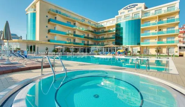 Set on its private beach in Cesenatico, the Valverde offers a 350 m² pool area with a hot tub and heated kids pool. The sea-view suites come with a kitchenette and LCD TV.
