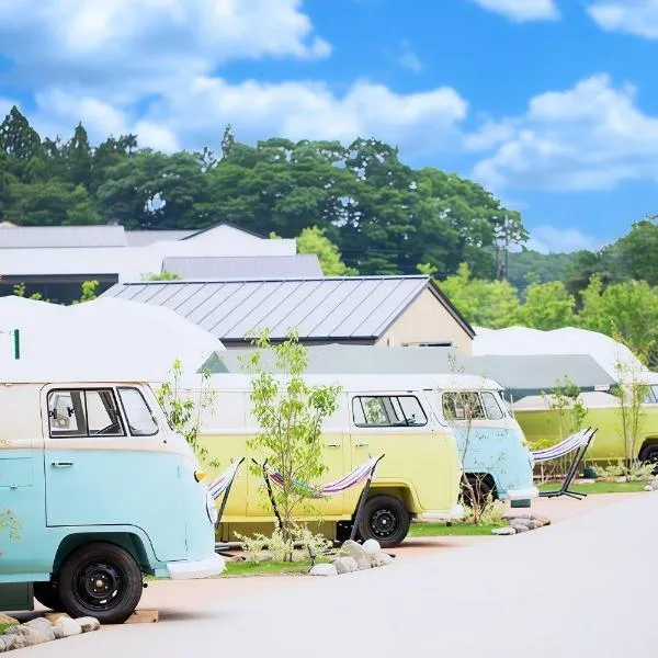 Ubicado en Nasu, a 28 km de Shirakawa Station, Nenn NASUKOUGEN GLAMPING tiene hospedaje con un jardín, estacionamiento privado de cortesía, un salón compartido y una terraza.