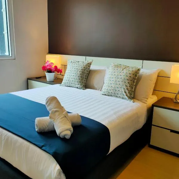 Nhìn ra núi, Geo38 Residence Snoopy cung cấp chỗ nghỉ có hồ bơi ngoài trời, trung tâm thể dục và khu vườn, cách Trung tâm thương mại First World Plaza khoảng 13 km.