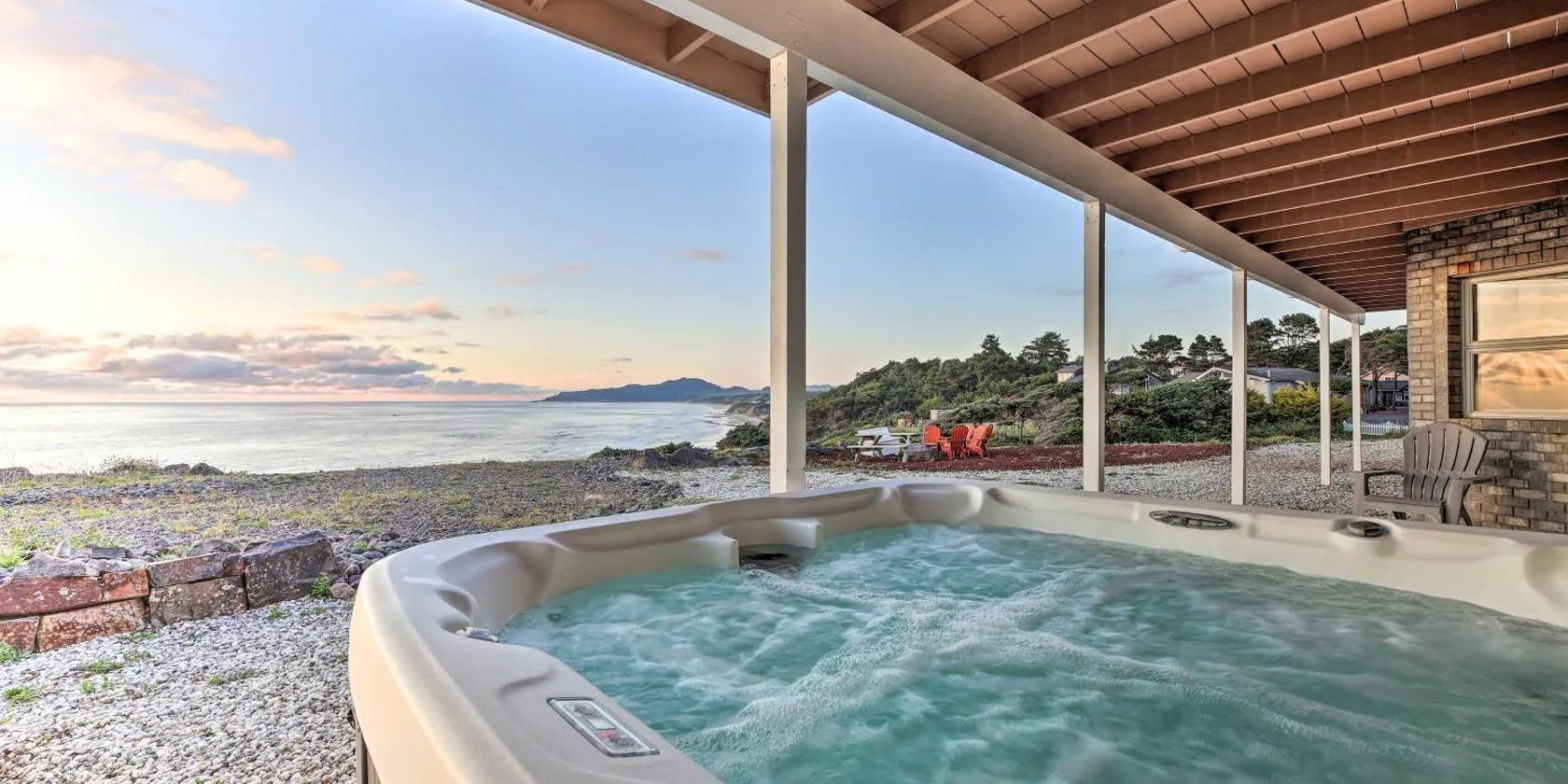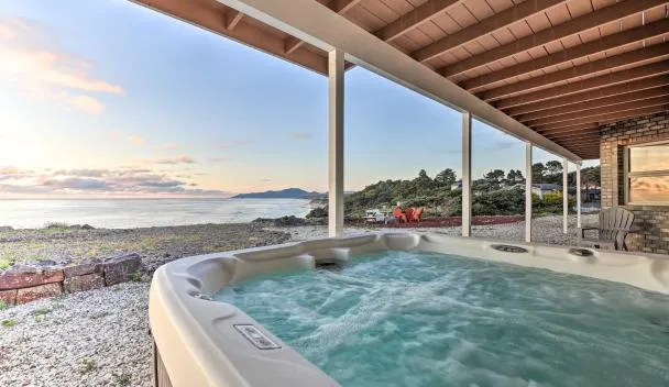 Nhìn ra biển, Whispering Seas with Hot Tub! cung cấp chỗ nghỉ có sân trong và máy pha cà phê, cách Bãi biển Agate Beach khoảng chỉ vài bước chân.