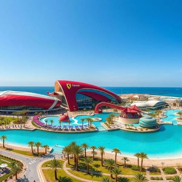 Elegant 1BR Yas Island with Theme Park Views & Exclusive Yas Park Offers, um alojamento com um jardim e um terraço, encontra-se em Abu Dhabi, a 9 minutos a pé de Parque Aquático Yas Waterworld, 1,1 km...