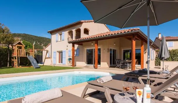 Apresentando vista da piscina, La Villa des 3 ifs dispõe de acomodações com varanda e máquina de café, a cerca de 6,4 km de Pont d'Arc.