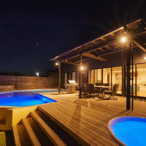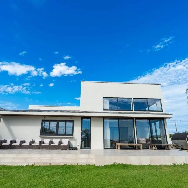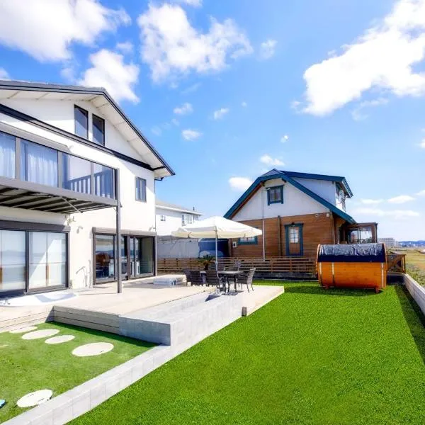Fornecendo vista do mar em Minamiboso, The BONDS SPAオーシャンプライベートヴィラー千葉白浜ー fornece acomodações, uma piscina exterior sazonal, um jardim, um salão partilhado, um terraço e comodidades para churrascos.
