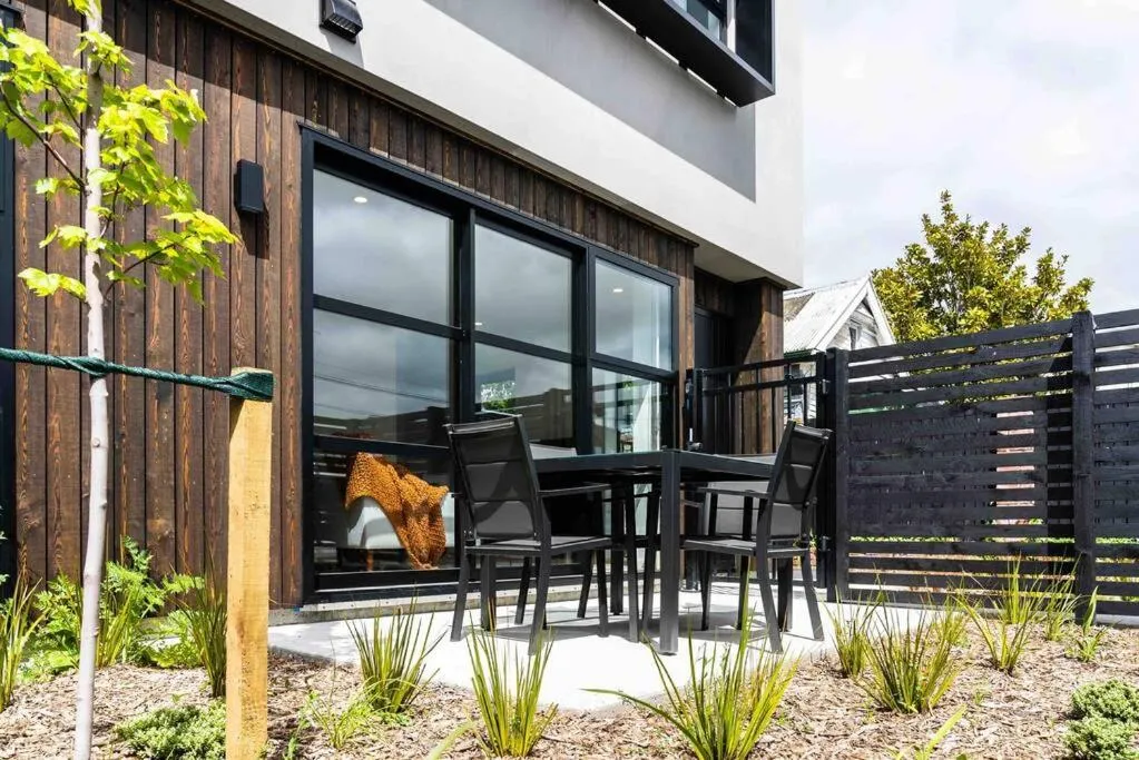 Ở trung tâm Christchurch, Urban Nest - Entire Townhouse and Free Parking có nhìn ra khu vườn từ sân trong.