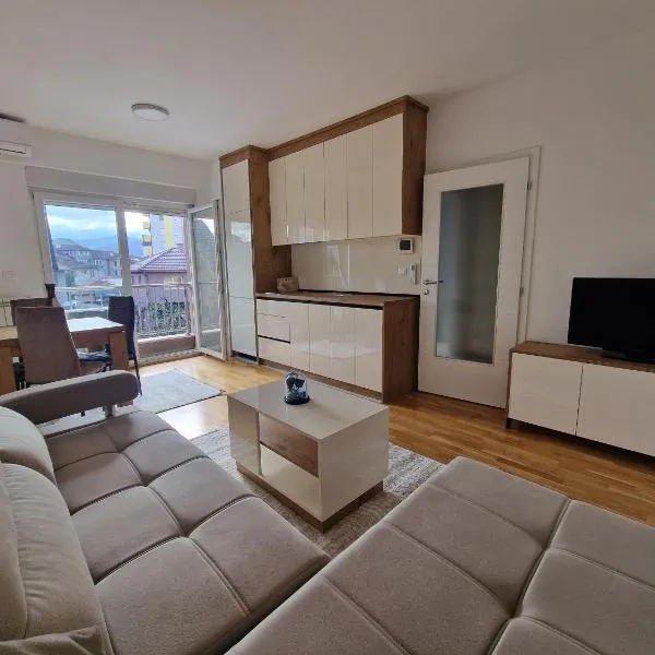 Staša Apartmani ligger i Novi Pazar. Overnatningsstedet har udsigt til byen. Denne lejlighed med aircondition har siddeområde, køkken med køleskab og kabel-tv.