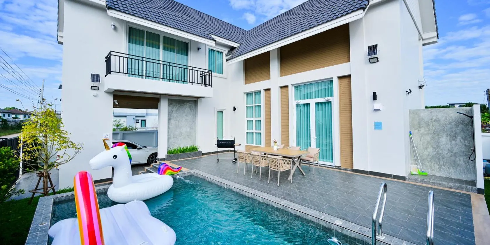 Nhìn ra khu vườn, บ้านพูลวิลล่าอุดรธานี by บ้านแสนรัก cung cấp chỗ nghỉ có hồ bơi ngoài trời, phòng chờ chung và sân hiên, cách Công viên công cộng Nongprajak khoảng 5.9 km.