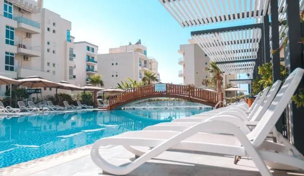 Apresentando uma varanda com vista da piscina, um jardim e um bar, Pool View Apartment - Diamond Hill Resort & SPA encontra-se em Vlorë, perto de Praia em Villas Governamentais e a 6,7 km de Kuzum...