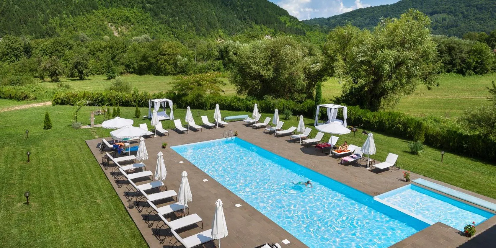 Двете къщи в планината ligger i Beli Osŭm med pooludsigt. Her er en sæsonåben udendørs swimmingpool, en have og et privat strandområde. Der er også gratis wi-fi.
