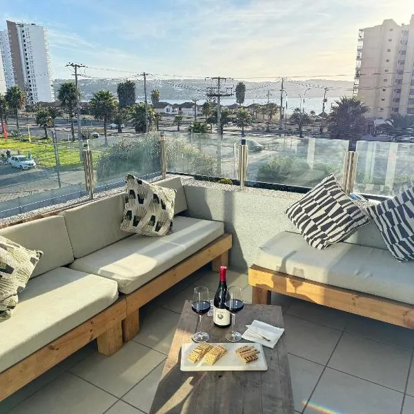 Departamento La Herradura a pasos de del mar ligger i Coquimbo med havudsigt. Her er en udendørs swimmingpool, en have og en terrasse. Der er også gratis wi-fi.