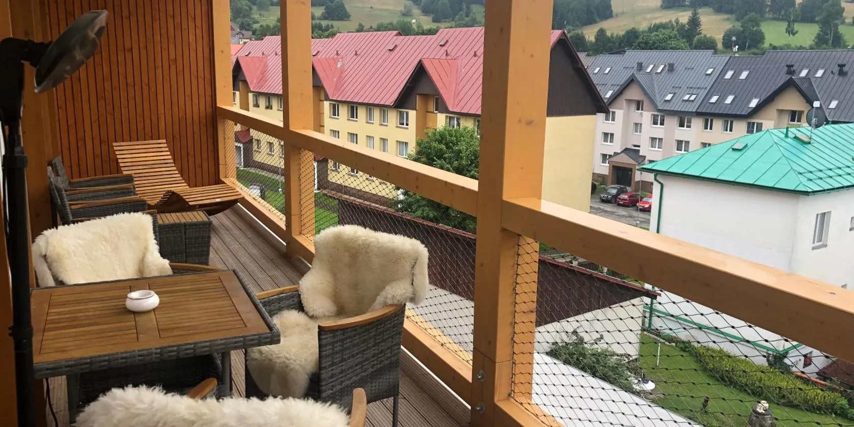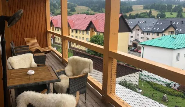 Situated in Železná Ruda in the Pilsen region, Terasy Apartmán se saunou has a balcony and city views. This property offers access to a terrace and free private parking.
