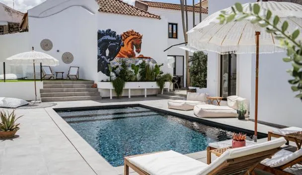 Nhìn ra hồ bơi, Azóia 10 - Hostel & Casas de Campo ở Azoia de Baixo cung cấp chỗ nghỉ có xe đạp miễn phí, hồ bơi ngoài trời, khu vườn, sân hiên và tiện nghi BBQ.