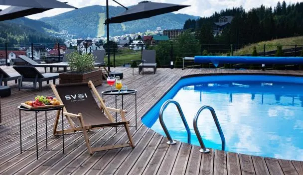 Tọa lạc ở Bukovel, cách Waterfall Probiy 31 km, Севеней Готель cung cấp chỗ nghỉ có hồ bơi ngoài trời theo mùa, chỗ đậu xe riêng miễn phí, sân hiên và nhà hàng.