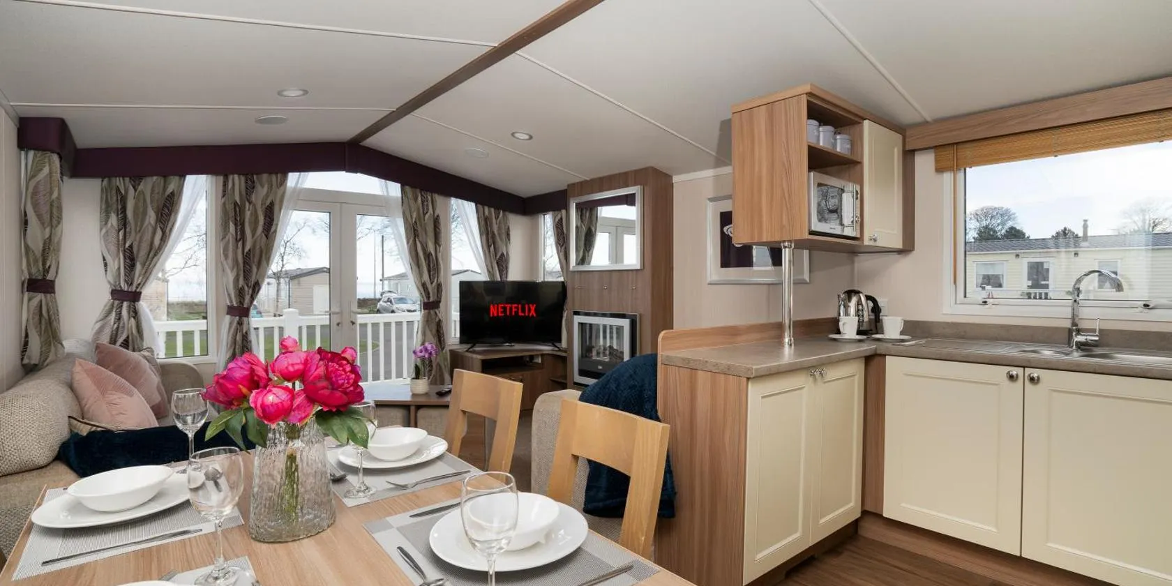 3 bedroom deluxe caravan ligger ved stranden i Longniddry, kun et stenkast fra Seton Sands Longniddry Beach. Her er en have, en restaurant, en bar og gratis wi-fi.