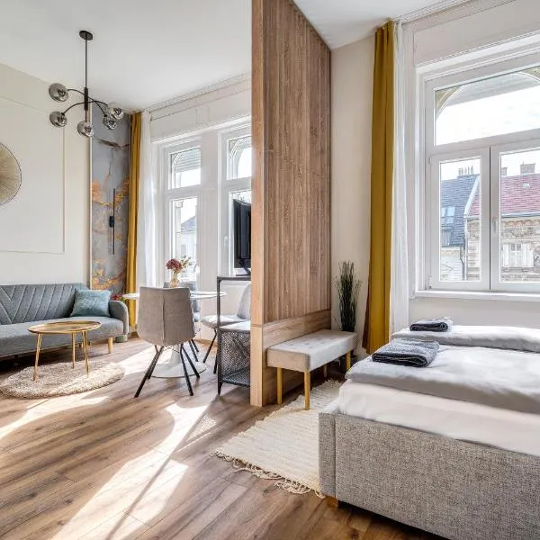 Just a 1-minute walk from the Deák Ferenc Square in the centre of Budapest, Gozsdu Court Budapest offers fully equipped apartments with free WiFi.