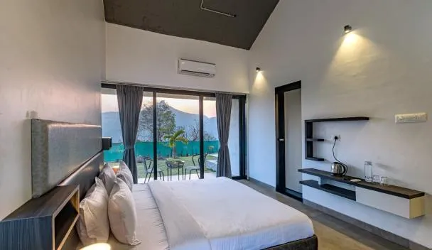 Với hồ bơi ngoài trời, khu vườn, cùng phòng chờ chung, SaffronStays Sundowner by the Lake, Karjat - party-perfect pool villa with rain dance and cricket turf cung cấp chỗ nghỉ ở Karjat có Wi-Fi miễn...
