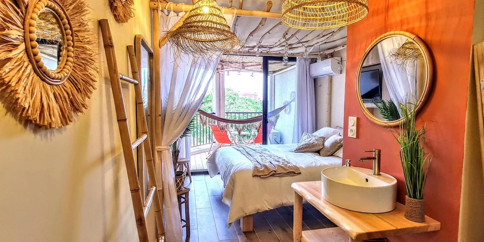Nid Doré - Suite bien-être avec sauna & balnéo privatifs là chỗ nghỉ có sân hiên và sòng bạc, nằm ở Le Barcarès, cách Stade Gilbert Brutus 23 km, Khu bảo tồn Reserve Africaine de Sigean 34 km và...