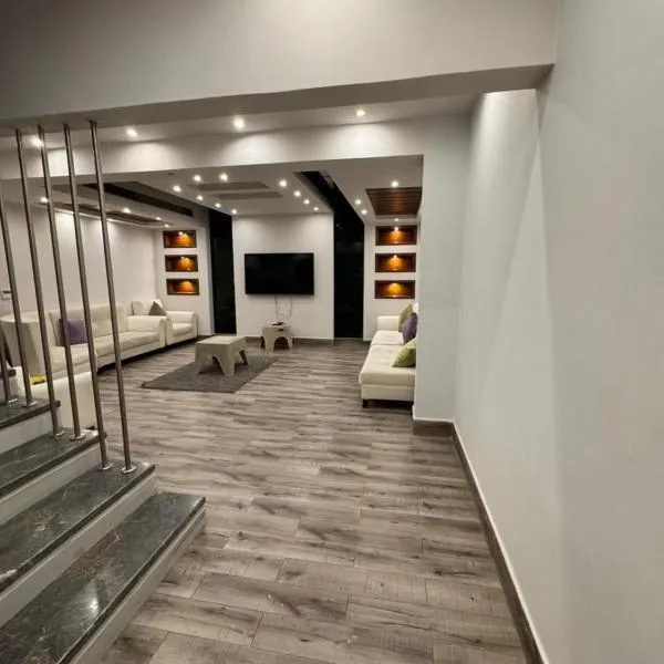 فيلا للايجار اليومى فى الريف الاوربي طريق مصر اسكندرية الصحراوي قريبة من مطار سفنكس وبجوار هايبر وان الصحراوي- 5 غرف نوم-حمام سباحة-شواية- كيدز ايريا- جيم- بلياردو, apresentando um terraço,...