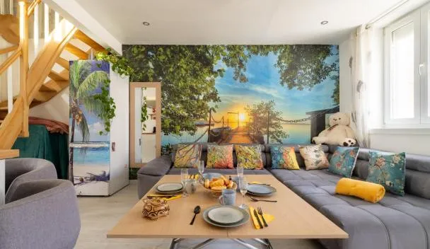 3.1 km from Calais Railway Station in Calais, Gîtes déco pop et chaleureuse avec jacuzzi, sauna, piece coquine offers accommodation with access to a sauna, hot tub and spa facilities.