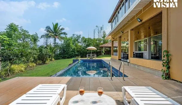 Offering an outdoor swimming pool and pool view, StayVista's Rivulet Waters - Lakefront Villa with Infinity Pool, Jacuzzi, Lawn, and Rustic Gazebo is situated in Pune, 45 km from University of Pune...