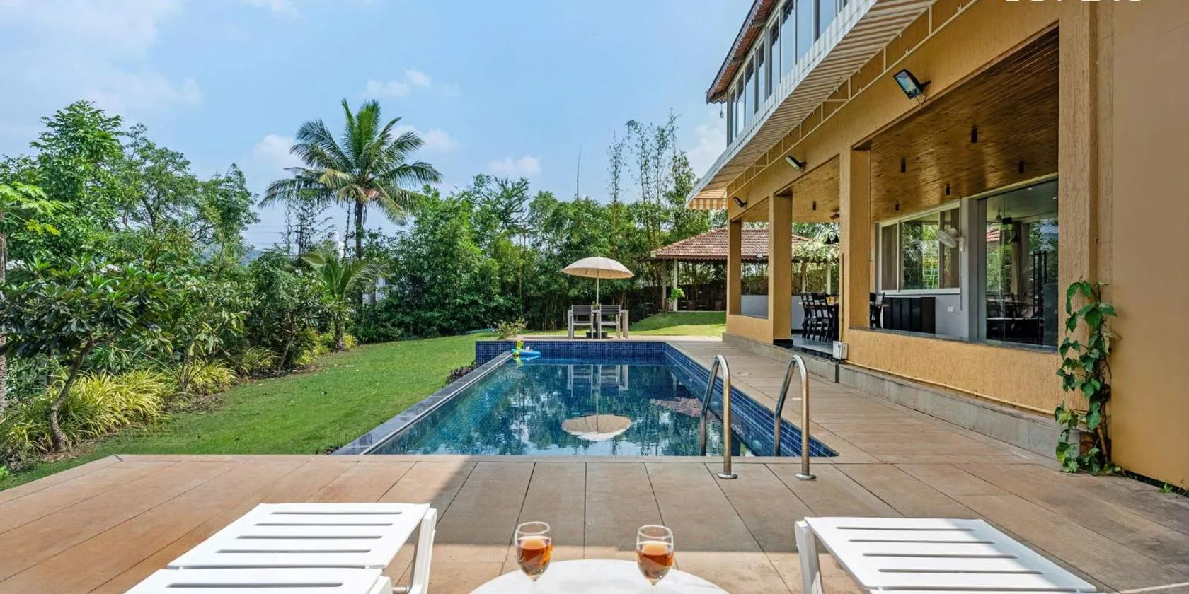 Nhìn ra hồ bơi, StayVista at Countryside Meadows with Pool, AC cung cấp chỗ nghỉ có hồ bơi ngoài trời và sân trong, cách Trường đại học University of Pune khoảng 31 km.
