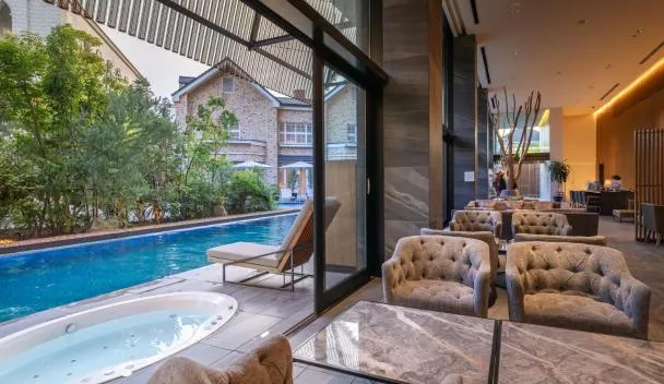 Situated in the centre of Hakata, New AirportHills 1400m2 絶景露天風呂1棟2階貸切 駐車場4台 サウナ BBQ施設 ペット features an outdoor swimming pool, a garden, free WiFi, and free private parking for guests who drive.