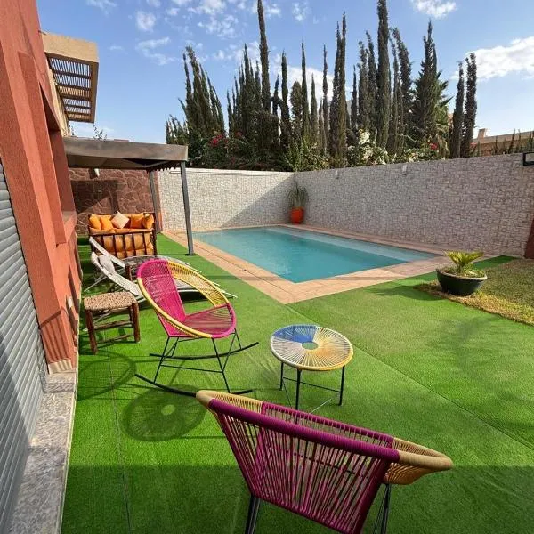 Apresentando uma piscina exterior, um salão partilhado e um terraço, Villa Milabel - Piscine et jardin Privée Sans vis-à-vis Wifi HD apresenta acomodações em Oulad Akkou com acesso Wi-Fi gratuito e...