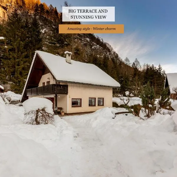 Với sân hiên, Alpine Wooden Villa with a View cung cấp chỗ nghỉ ở Gozd Martuljek có Wi-Fi miễn phí và nhìn ra khu vườn.