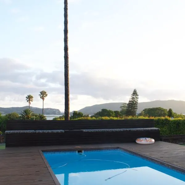 Tọa lạc ở Knysna, Two bedroom house with pool cung cấp chỗ nghỉ có hồ bơi riêng, ban công và nhìn ra khu vườn.